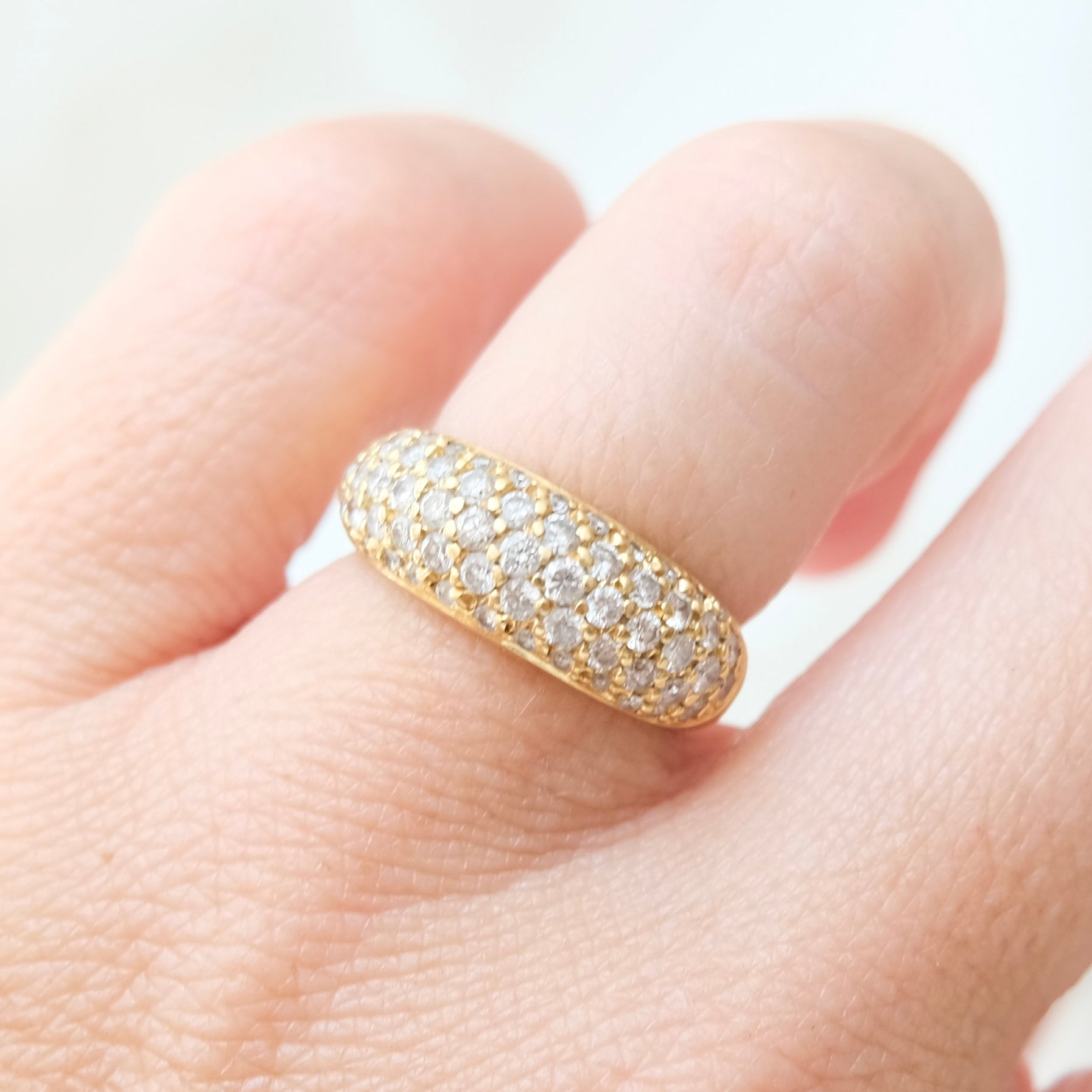 A stunning and sparkly French 1980s band filled with 1ct of eye clean pave diamonds. This would make the most impressive wedding ring for the right person. French hallmarks
