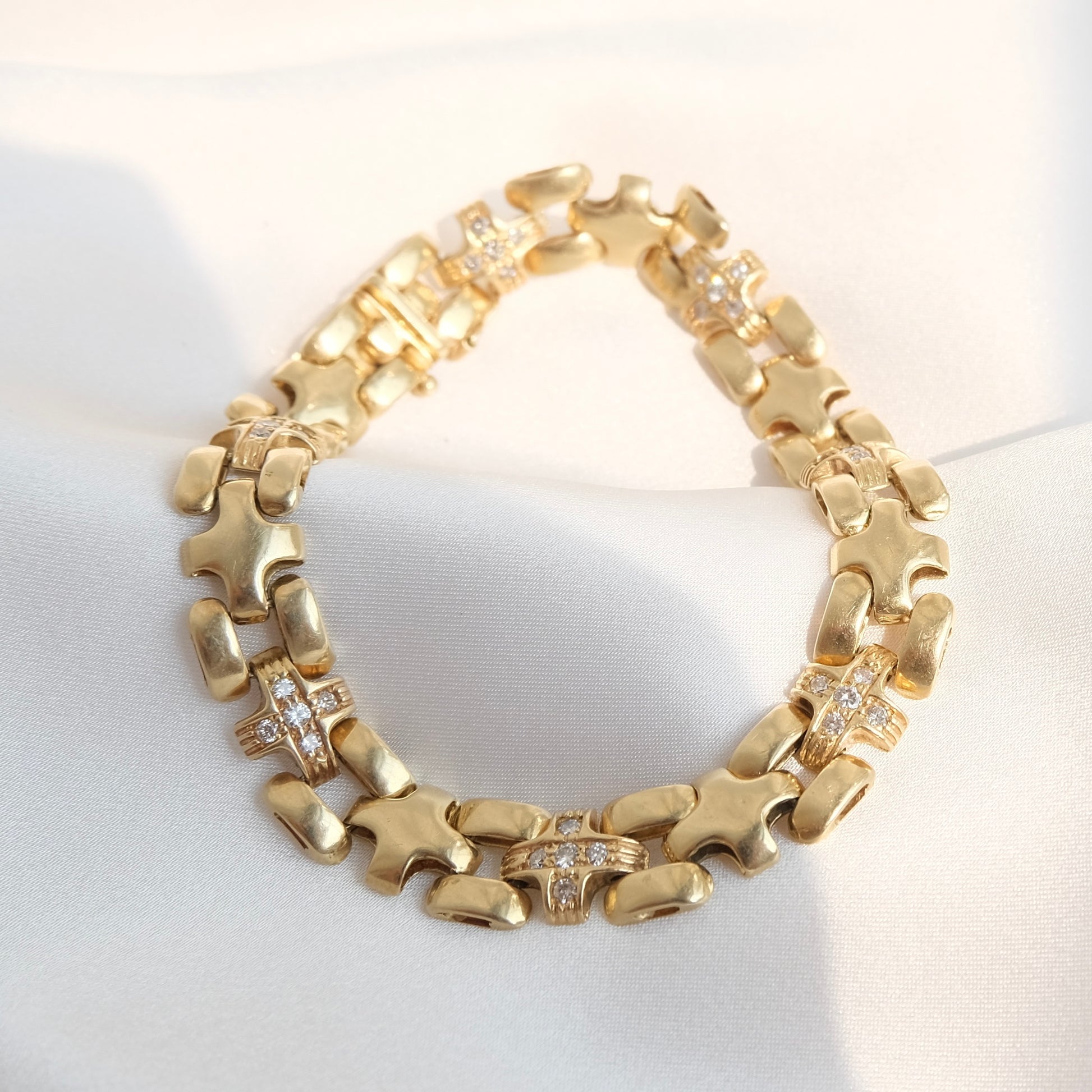 The epitome of Italian glamour. A 70s and 80s favorite is the Panther Link solid gold vintage bracelet at a solid 20 grams. A stunning buttery vintage gold with 1 full carat of diamonds. Currently 8 inches but can be sized.