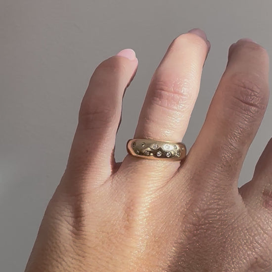 A 1970s vintage cigar flush set etoile ring set in 9k with diamonds - the perfect stacking design at size 6.25