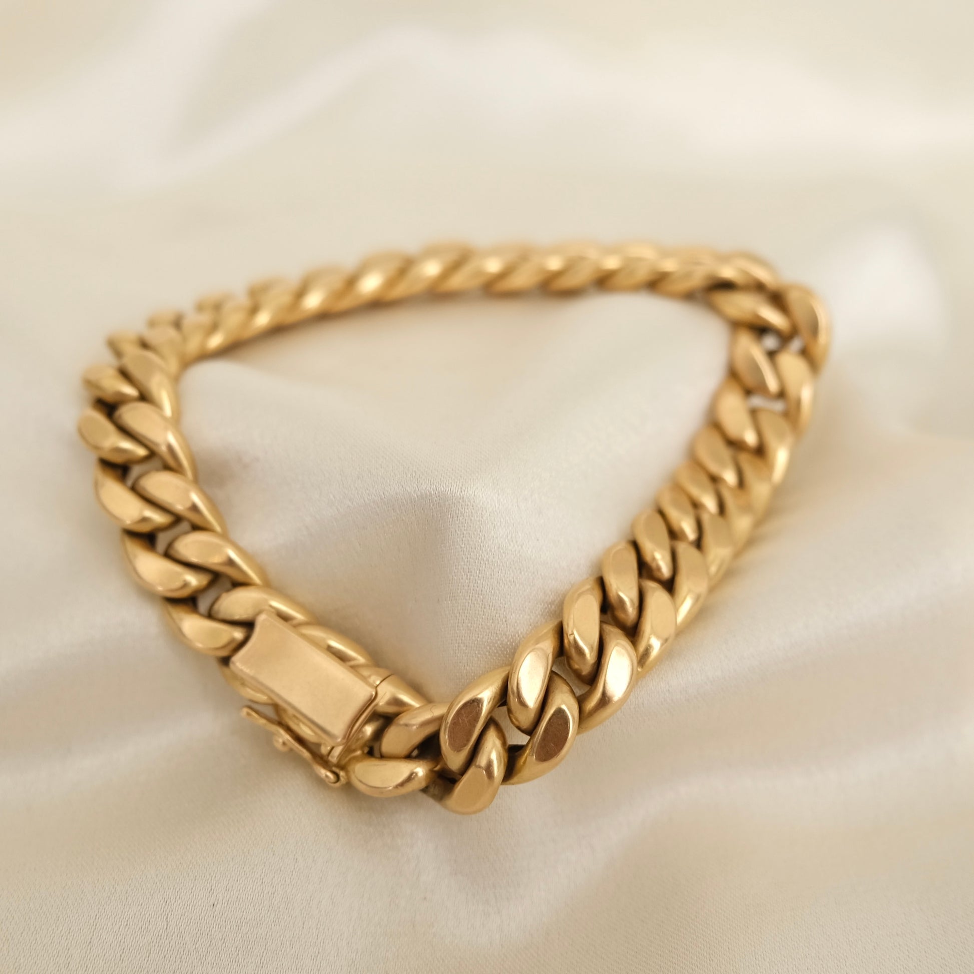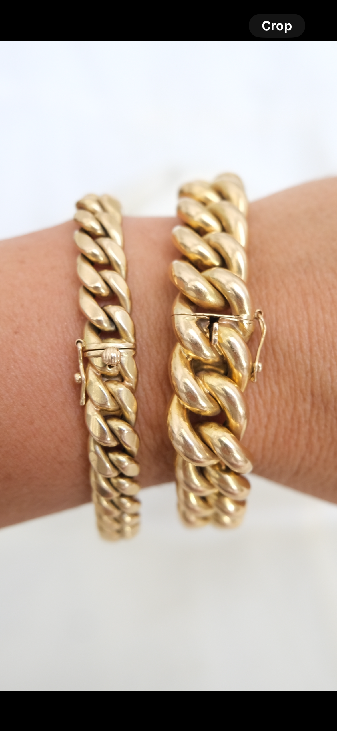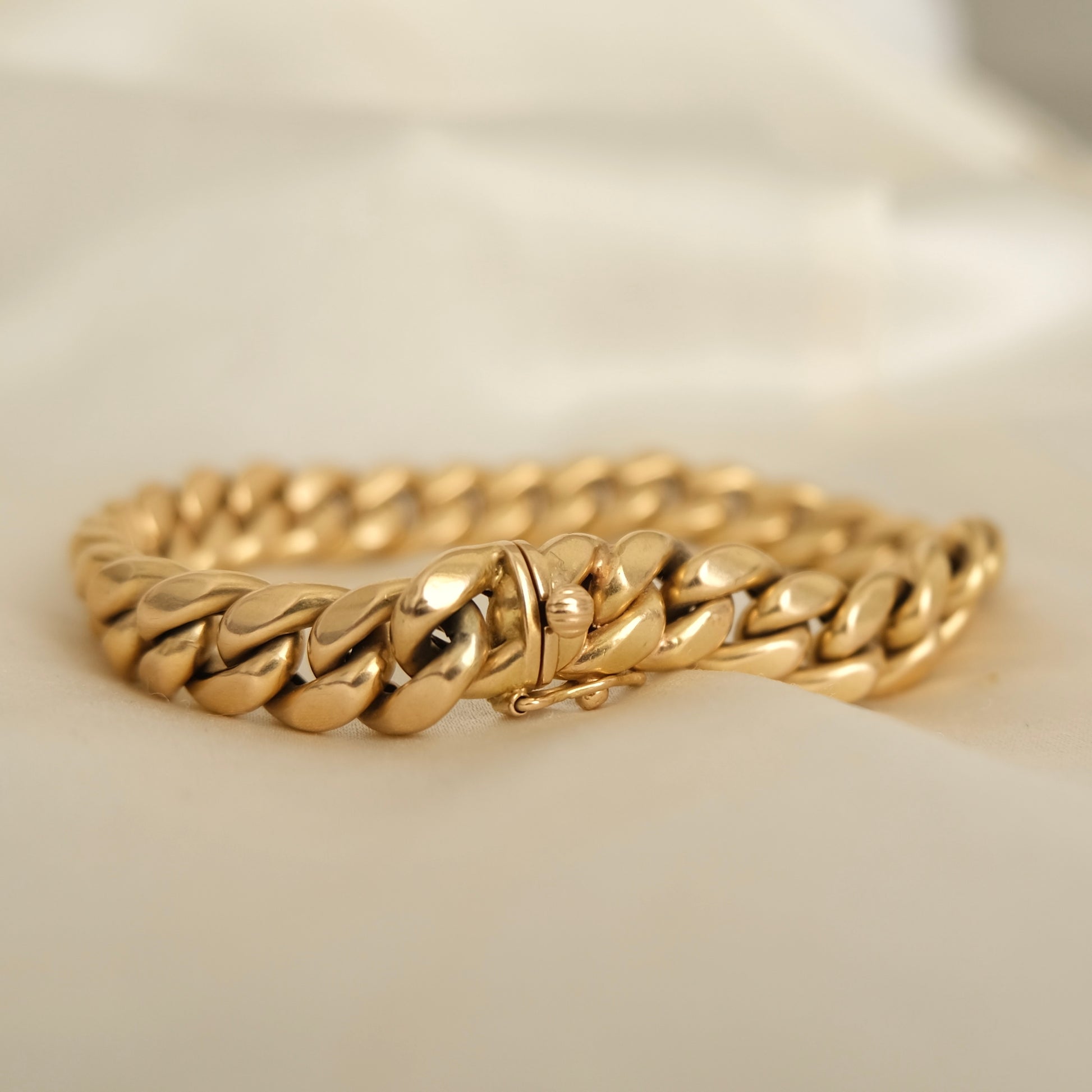 Made in Milan in 1901 this beautiful buttery old gold curb link bracelet with box clasp was the second-ever design from this antique Italian jeweler. 24 grams and 7.5 inches this 18k standout will be an heirloom to treasure forever. Made in Italy. Rare.