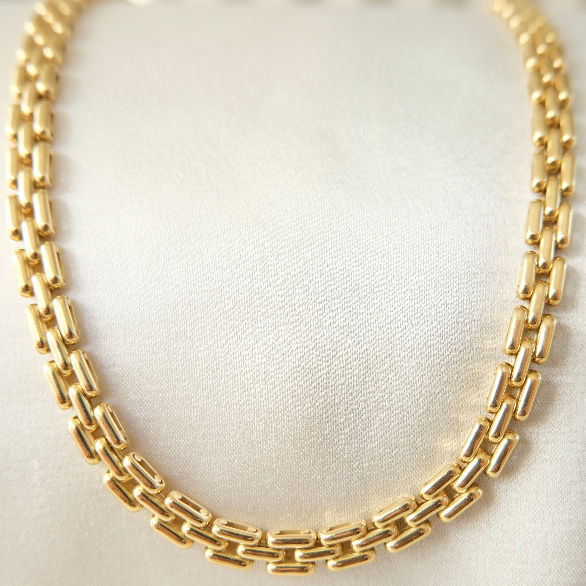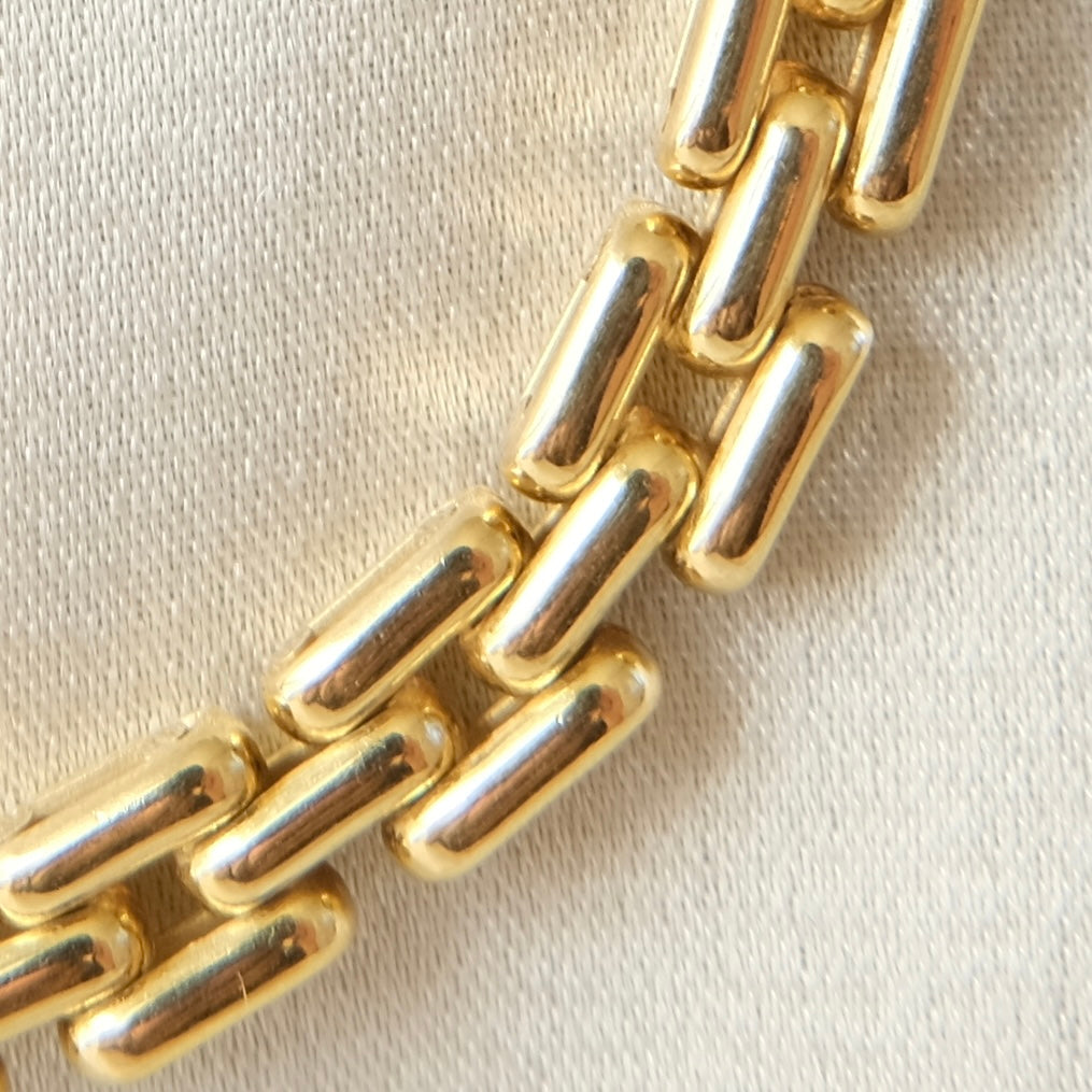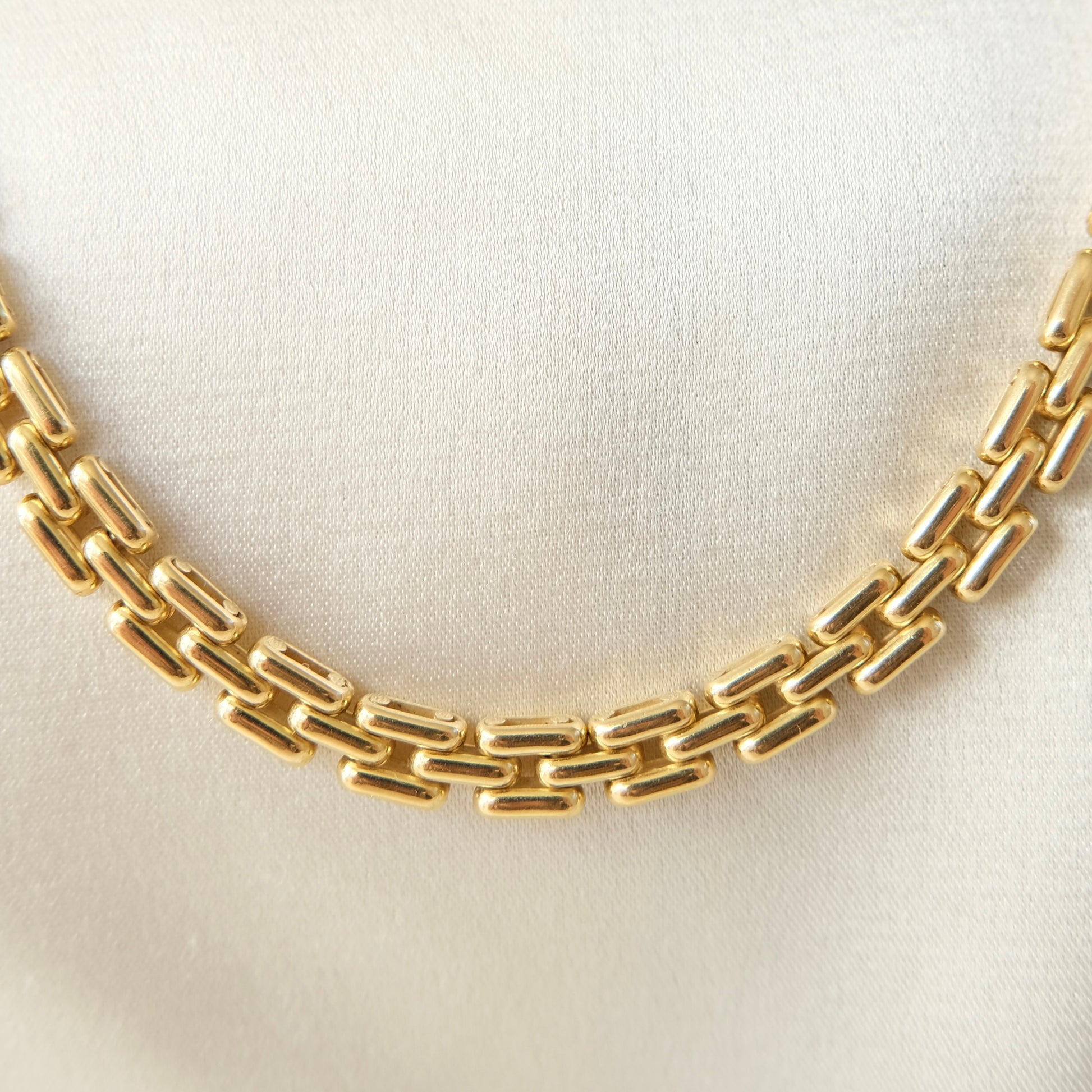 A stunning 18k gold, French panther link necklace in perfect condition with box clasp (the best kind of clasp). Measures 16.5 inches, 25.2g circa 1970.