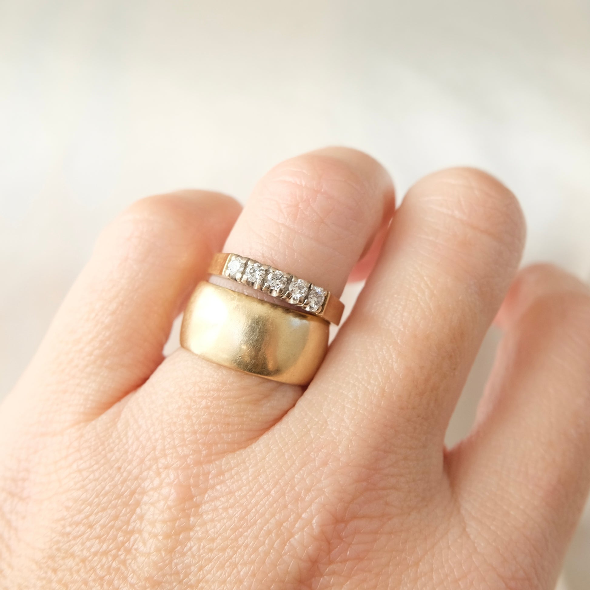 Brit’s note: As a jewelry collector I’m such a massive advocate for cigar bands. I think they’re both practical and chic and they look amazing due to the sheer amount of real estate they take up on your finger. True vintage appeal.