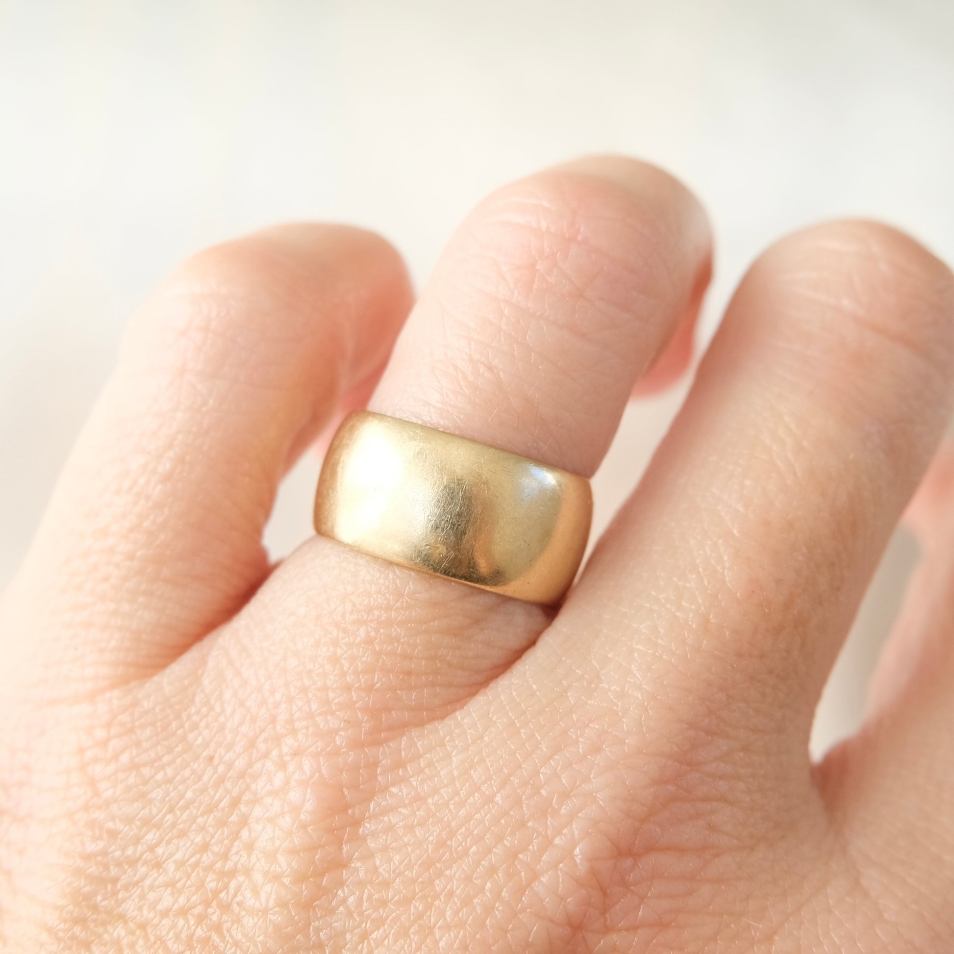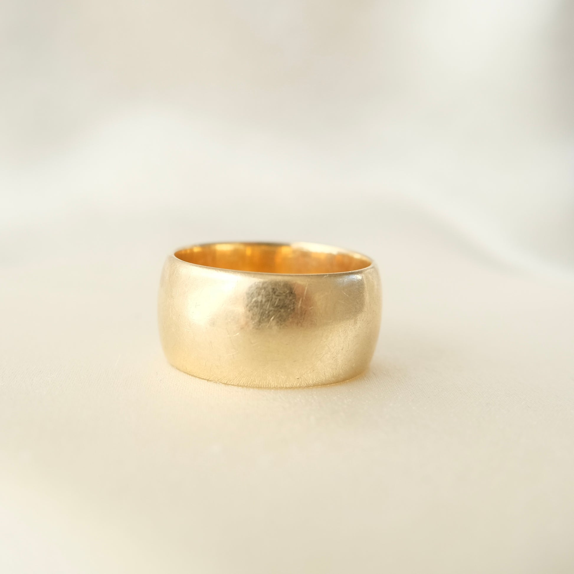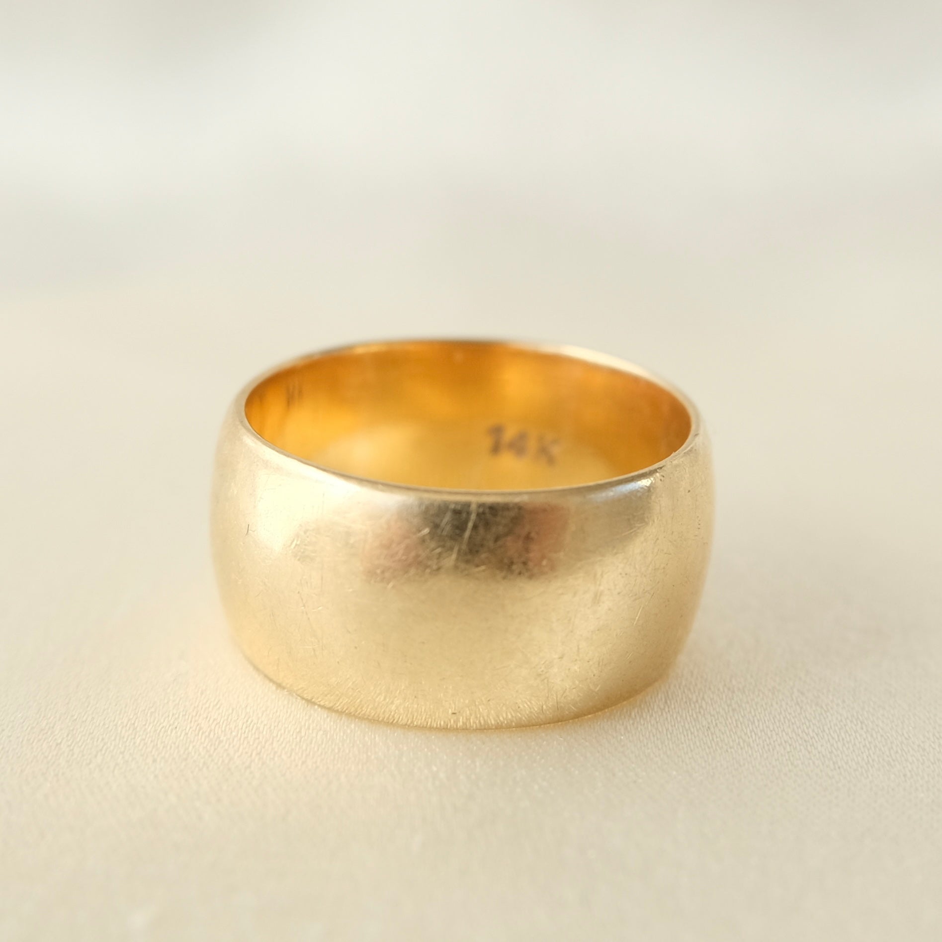 A stunning 14k gold yellow gold cigar band in a ssize 6. Lovely lush weight of 8.5g and 9mms wide. Made in Birmingham 1970.