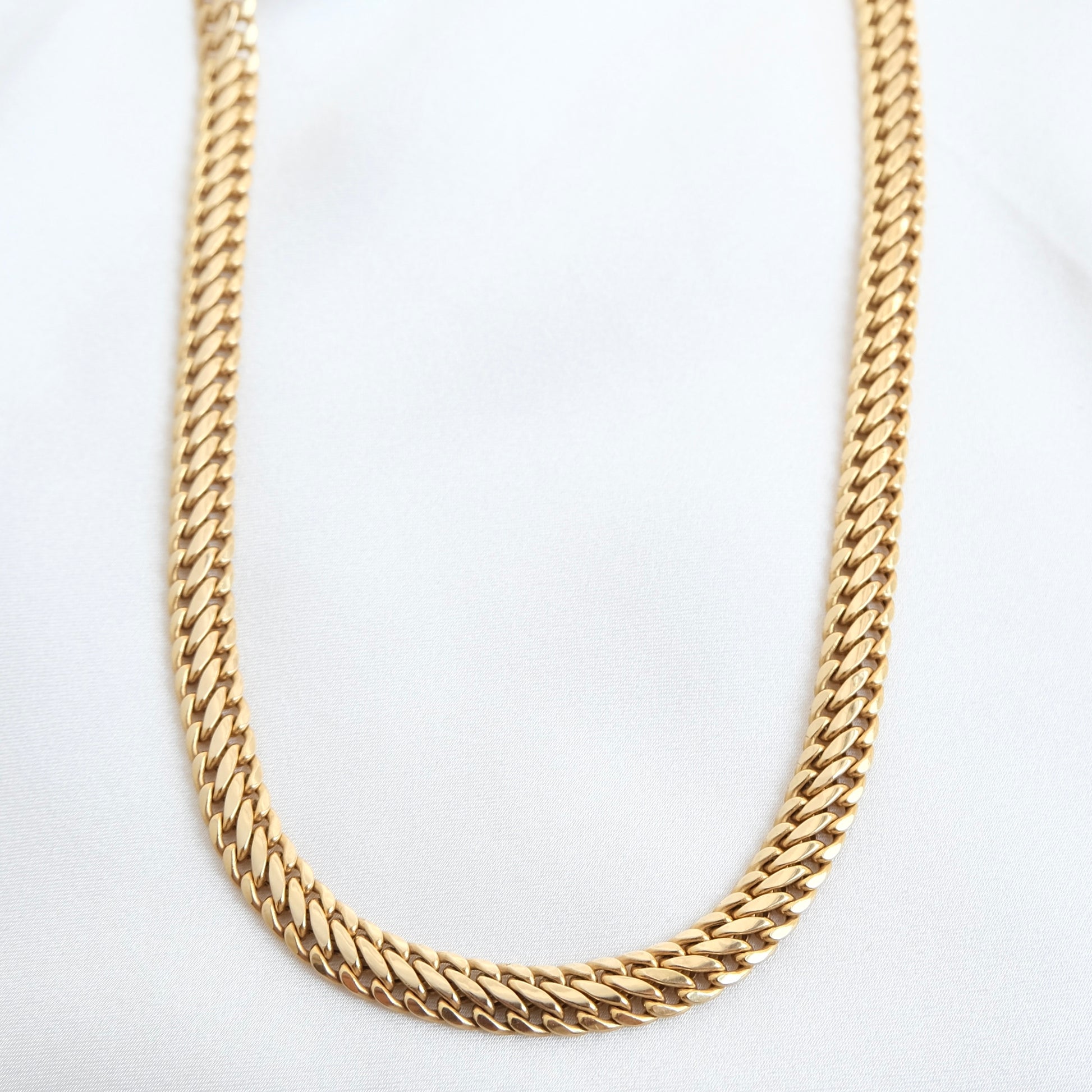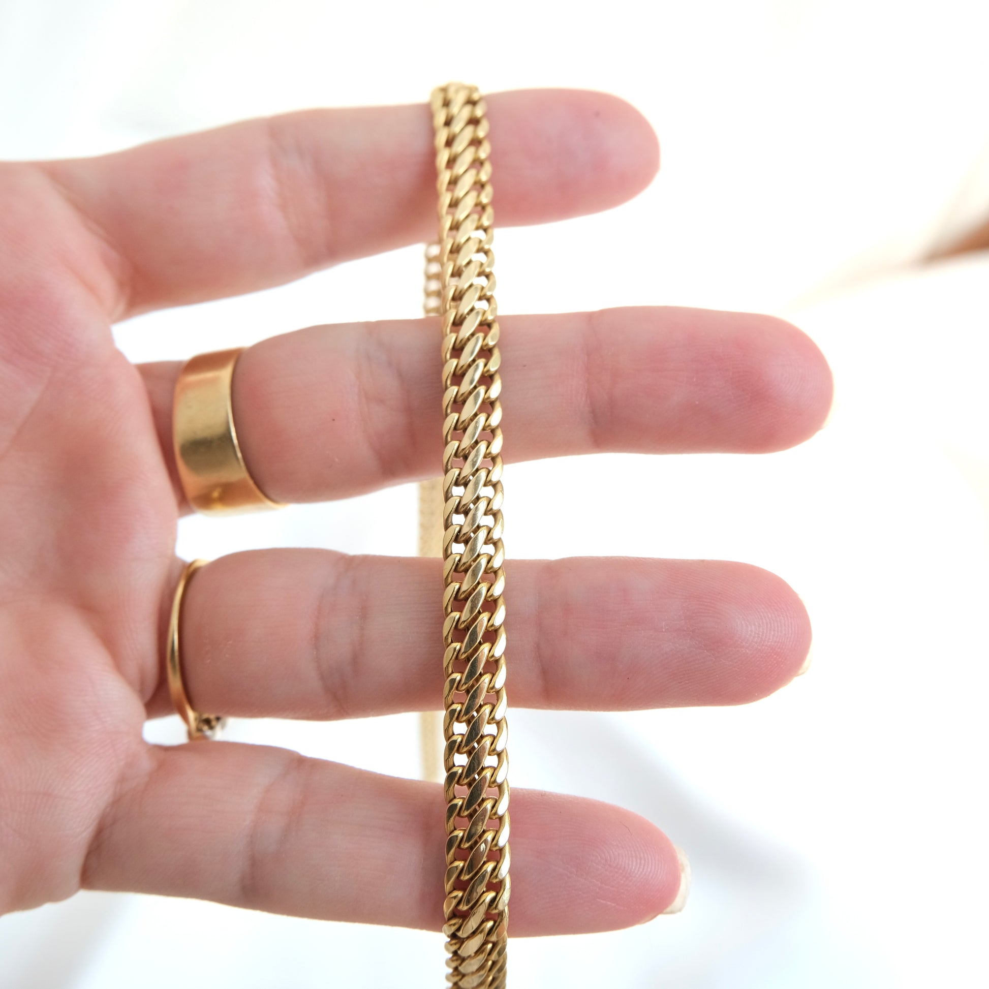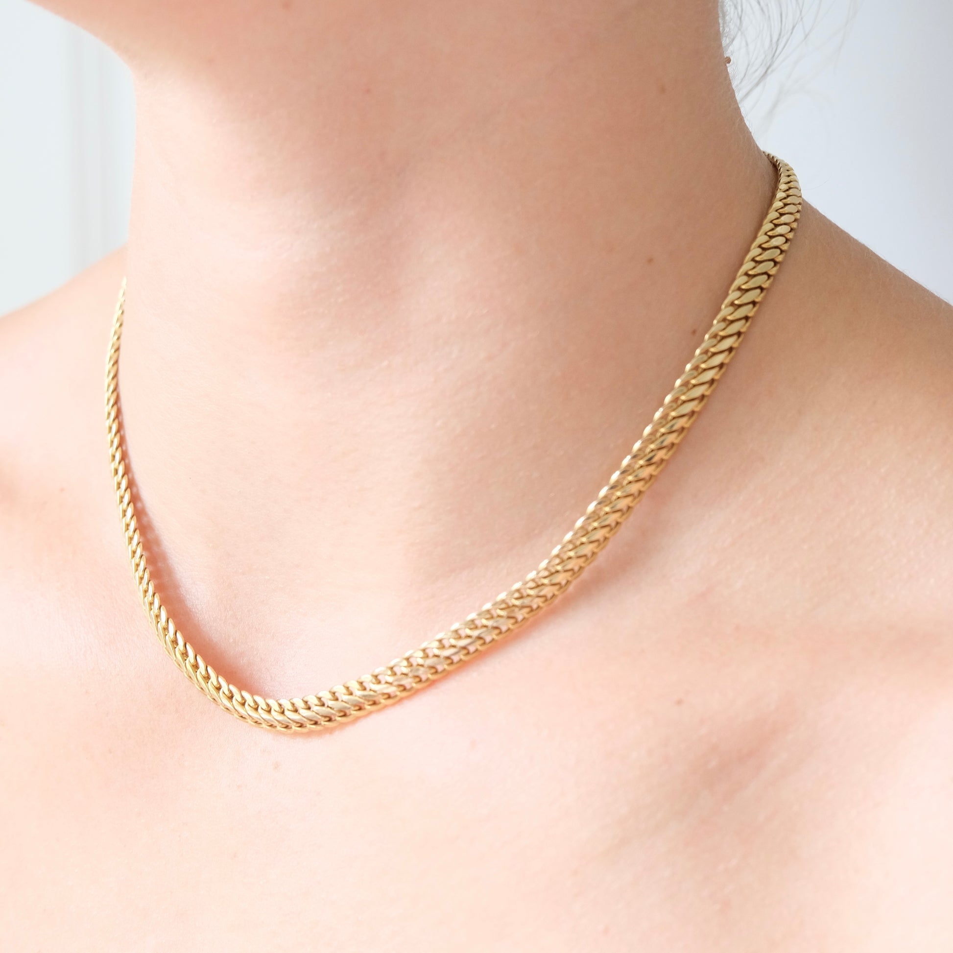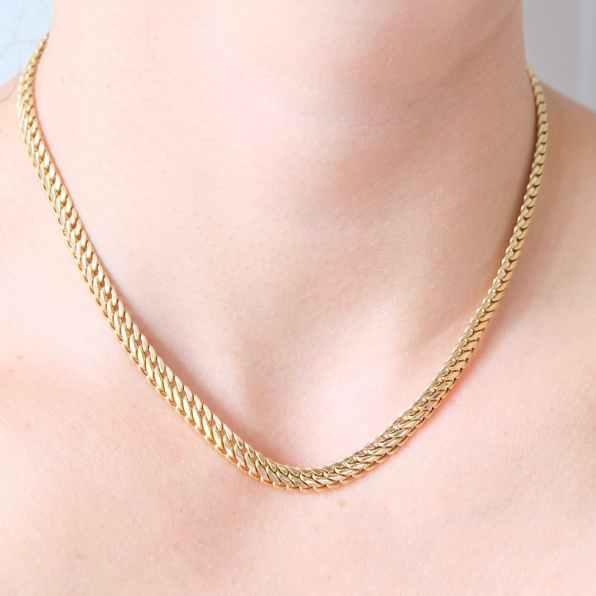 A 1990s staple piece to wear every day. 14k Italian triple wheat chain that feels so slinky and smooth on. 17.5 inches and 8mm wide.